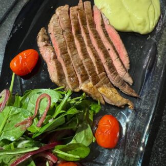 Фланк стейк с зеленым салатом и картофельным муссом с трюфелем 400гр