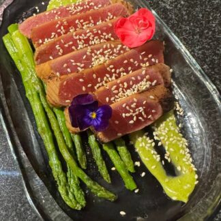 Тунец татаки со спаржей и соусом манго-базилик 370гр