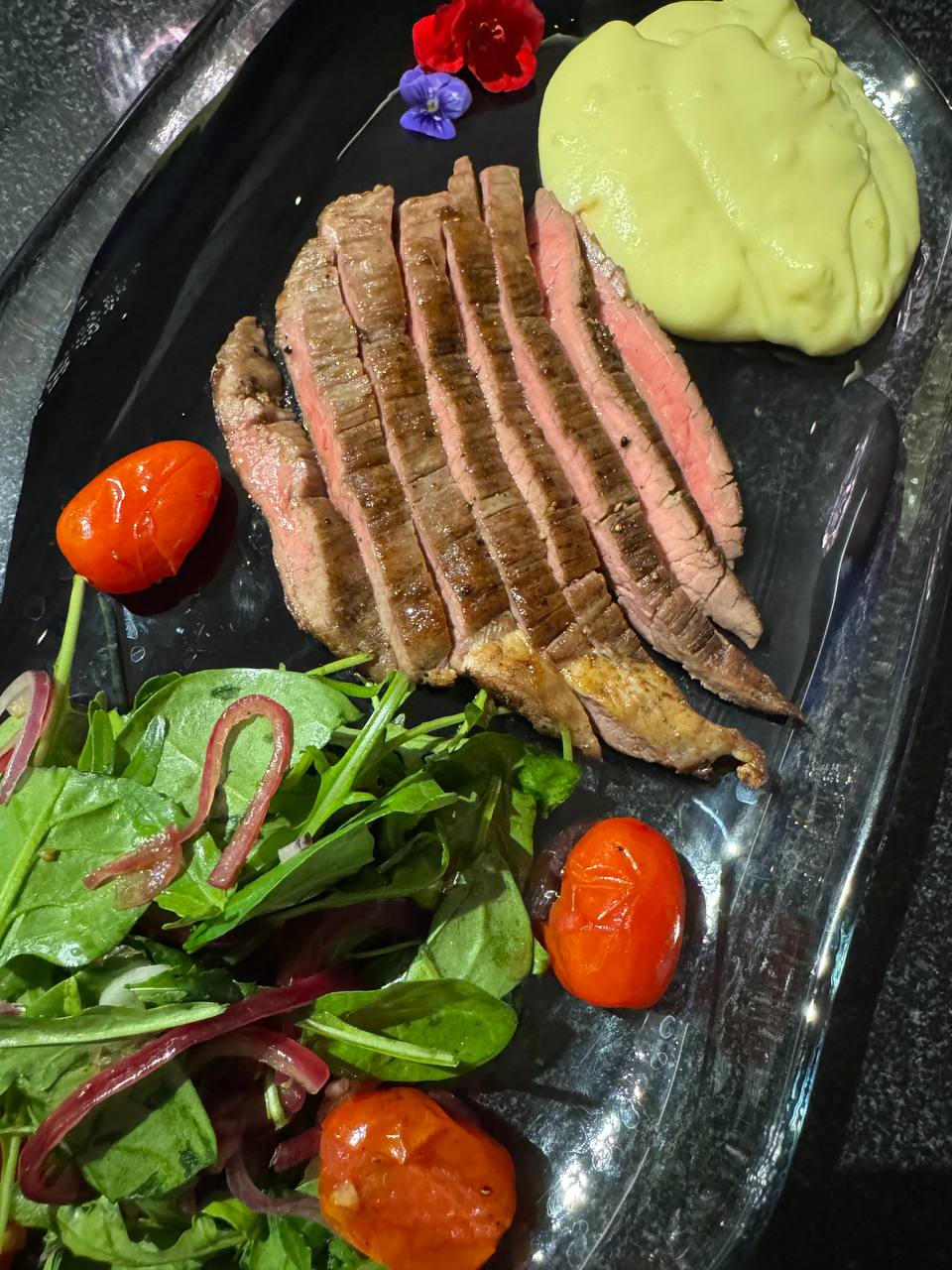 Фланк стейк с зеленым салатом и картофельным муссом с трюфелем 400гр